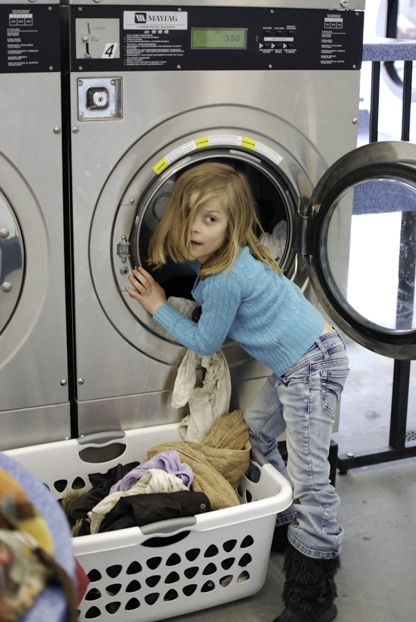 The girls and I took 2 big baskets stuffed with dirty clothes to a laundry mat yesterday. I'm sure this is the closest Binny will ever get to the front loader I've been dreaming of since my last washing machine bit the dust. I'm shopping craigslist for now.